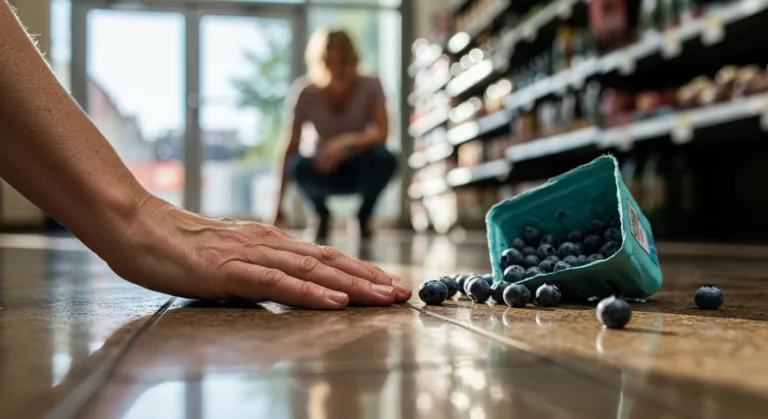 - Wet or slippery floors: Spills in grocery stores, leaks in buildings, or tracked-in rain can create hazardous conditions.